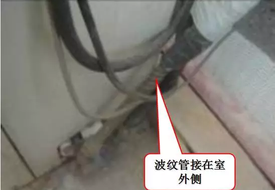 連接管未做防水彎,易產(chǎn)生漏水。要求必須做防水彎,但不允許蛇行走管。