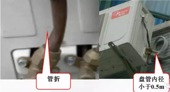 內(nèi)機(jī)連接管連接不合理,且扎線混亂。