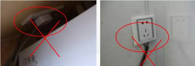 未用壓線卡固定,且無接地線,易造成漏電,有安全隱患。要求必須用壓線卡固定且必須接地。