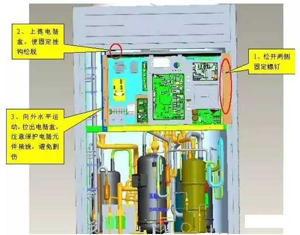 在拆卸壓縮機(jī)接線、感溫包和電加熱時(shí),應(yīng)該作好相應(yīng)的標(biāo)示,方便更換后重新接線。