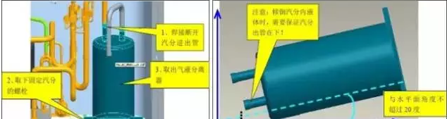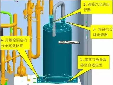 將汽分放置與底盤合適位置,連接汽分進(jìn)出管路,然后在汽分連接管路上連接氮?dú)饨涌冢梢愿鶕?jù)現(xiàn)場(chǎng)情況選擇連接氮?dú)馕恢?,可以使用旁通接口或者直接連接在進(jìn)出汽分管路上,管路較大時(shí)可用膠帶配合連接,需要保證氮?dú)饽軌蝽槙沉鹘?jīng)汽分。
