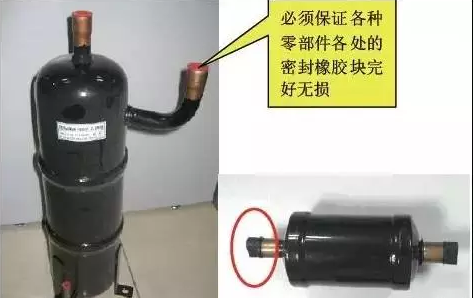 注意:如果壓縮機(jī)損壞需要更換時(shí),必須同時(shí)更換氣液分離器!無論氣液分離器內(nèi)是否含有雜質(zhì)或者其他異常情況。