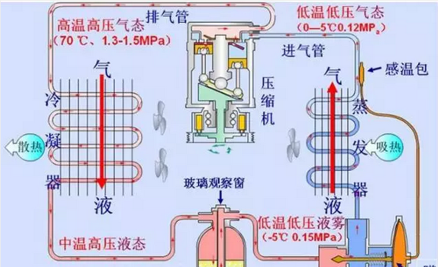 因此雖然視液鏡可作為一種確定制冷劑加注量 的有效工具,但僅通過(guò)觀察制冷劑流動(dòng)來(lái)確定制冷劑的正確加 注量仍是不可取的。判斷制冷劑充注是否合適的標(biāo)準(zhǔn)是系統(tǒng)回氣過(guò)熱度和液體過(guò)熱度。