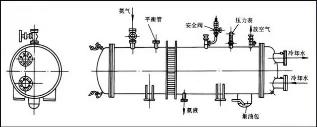 臥式殼管式冷凝器特點(diǎn):傳熱系數(shù)高,冷卻水用量少,操作管理方便;但是對(duì)冷卻水水質(zhì) 要求高。目前大、中型制冷裝置普遍采用這種裝置。