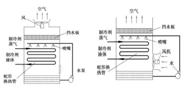 空氣冷卻式冷凝器中根據(jù)管外空氣流動(dòng)方式: